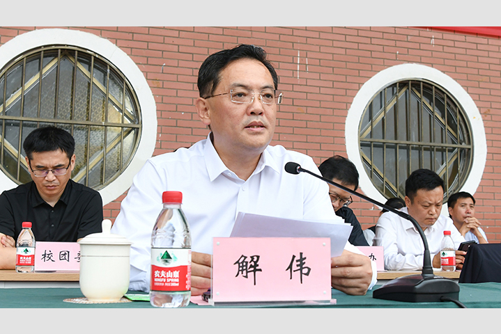 解伟讲话,他首先对承担军训任务的部队官兵和所有工作人员表示衷心的感谢和崇高的敬意,并对全体参训学生及受表彰的先进集体和个人表示了诚挚的问候和热烈的祝贺。解伟指出,通过军训,同学们不仅增强了体魄,磨练了意志,更培养了团队意识、纪律观念和爱国情怀。对即将进入新的学习阶段,解伟提出四点期望:一要志存高远,厚植家国情怀。希望同学们自觉把个人理想追求融入党和国家事业之中,立报国强国大志向、做挺膺担当奋斗者。二要求是创新,练就过硬本领。希望同学们珍惜时光,老老实实做学问,勤勤恳恳下功夫,不断提高自身素质和能力。三要团结友爱、涵养道德情操。希望同学们在增长知识的同时,自觉加强思想道德修养,在学习和生活中相互帮助,共同成长。四要乐观豁达,保持积极心态。希望同学们处优而不养尊,受挫而不短志,在失败中汲取教训,在挫折中磨砺意志,以阳光自信的心态直面人生,以永不言败的精神迎接挑战。在理工大绽放青春、启迪智慧,施展才华、彰显价值,以饱满的热情和昂扬的斗志,投入到大学的学习和生活中去,努力成长为德智体美劳全面发展的社会主义建设者和接班人。