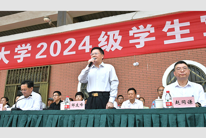转自学校新闻网(记者 芦晓伟 通讯员 胡泽宇/文 记者 李为群 通讯员 徐福豪 马涵钰 郇齐齐/图)9月27日下午,南校区西体育场内军歌嘹亮,口号震天,2024级学生军训总结表彰大会隆重举行。校党委书记邹友峰,校长赵同谦,校党委副书记解伟,副校长李振华、丁亚红,校长助理谢生荣及32146部队王存威等出席大会,大会由武装部部长李壮文主持。