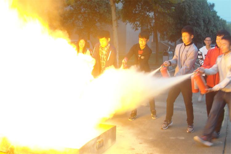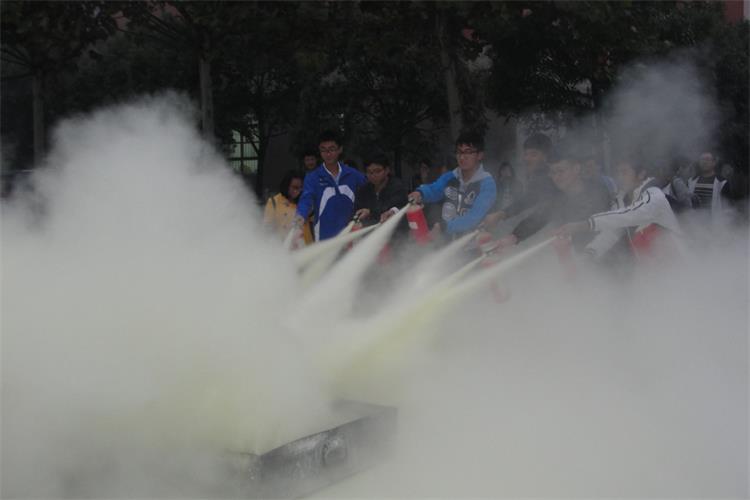 在安全教育课后,组织学生进行现场“消防灭火演练”活动,让学生进行灭火实际操作,使同学们对灭火器的使用有了深刻体会。