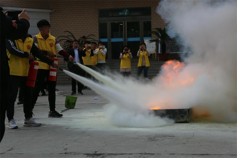 本次活动从消防灭火演练拉开帷幕,北校区毋高潮老师首先为参演师生详细讲解了干粉灭火器的基本原理和正确使用方法,并重点讲解了消防四个能力的基本知识。然后,参演师生员工按照现场扑救火灾的操作步骤和基本要求,依次进行了消防灭火实战演练。