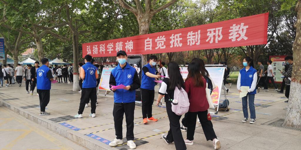 为进一步贯彻落实“反邪教警示教育进校园”活动,保卫部联合焦作市城乡一体化示范区公安分局政保大队于2022年4月25日9时在春秋大道南侧开展了宣传教育活动。
