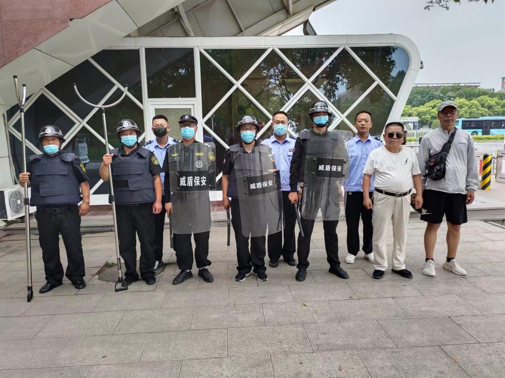演练前,河南威盾保安服务有限公司主管丁志鑫对安保人员进行了防暴技能培训,逐一熟悉了防爆盾牌、警棍、钢叉和钢钳等的使用方法,掌握基本的防暴技能。演练中,两名“暴徒”擅闯校园,安保人员迅速反应,启动反恐预案,组织一线安保力量,手持防暴装备,全副武装,严阵以待。面对“暴徒”实施的极端行为,安保人员临危不惧,利用防暴盾牌进行防御堵截。经多人合围,最终使用防暴钢叉将“暴徒”制服。本次演练过程紧张有序,处置及时,取得预期效果,有利于进一步提升校园反恐防暴能力和应急处置水平。