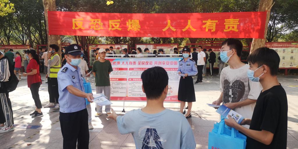 为进一步贯彻落实反恐宣传活动要求,9月28日上午10时,我校保卫部联合焦作市城乡一体化示范区高新公安分局政保大队在明德广场共同举办了“反恐宣传进校园活动”。