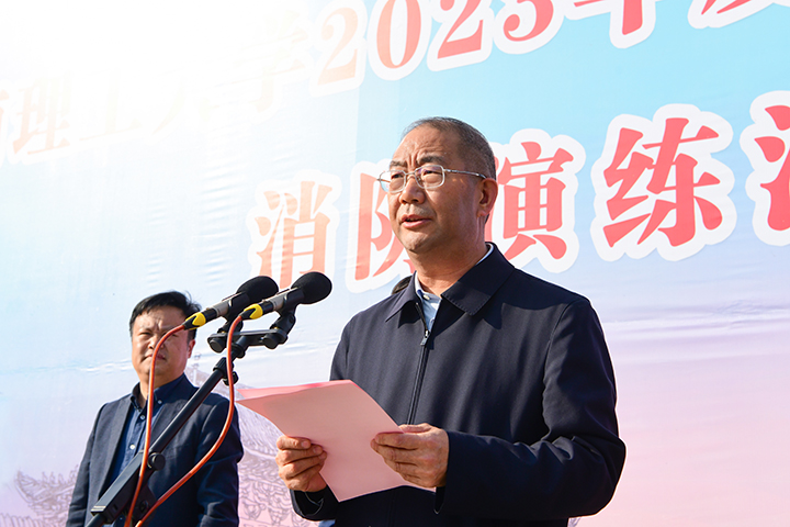 杨小林宣布河南理工大学2023年度119消防演练开始。