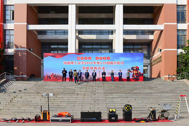 11月7日下午,我校119消防宣传月消防演练活动分别在南校区世纪广场和北校区第二教学楼前举行。校长杨小林、副校长翟耀南出席活动,焦作市消防救援支队指战员、相关职能部门和学院负责人、2023级辅导员和全体学生参加活动。开幕式由保卫部(处)部(处)长李壮文主持。