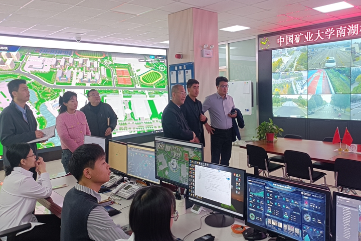 翟耀南一行先后调研了中国矿业大学校园交通监控设施、徐州市公安局驻中国矿业大学警务服务站、安防监控中心等校园安全设施。