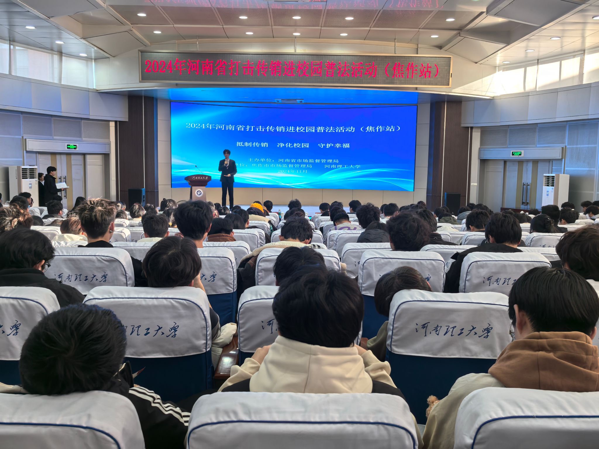在2024年法治宣传月期间,为切实增强广大学生防范传销的能力,全力营造防范打击传销的浓厚舆论氛围,11月26日,保卫处、校办、学生处、校团委联合焦作市市场监管局在我校学术报告厅举办2024年河南省“打击传销进校园”(焦作站)普法活动。 我校纪委书记、监察专员赵晓军,河南省市场监管局反不正当竞争处处长宋松林,焦作市市场监管局党组成员、副局长马进学等领导参加活动,彰显学校和政府对此次普法活动的高度重视与大力支持。