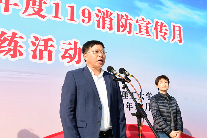 翟耀南讲话。他表示,近年来我校深入学习贯彻习近平总书记关于安全生产和消防工作的重要论述,认真落实上级有关安全工作的会议和文件精神,深入开展安全专项整治三年行动,有力维护了师生生命健康和校园安全。他指出,当前已进入火灾高发季节,要以119消防宣传月活动为契机,广泛组织开展安全宣传教育和应急演练活动,积极营造“人人关注消防、人人参与消防”的良好氛围,着力提升师生员工安全防范意识和自防自救能力。要结合《河南理工大学重大事故隐患专项排查整治2023行动实施方案》,扎实开展消防隐患排查整治,持续推动专项行动落实落细,以高水平安全保障学校事业高质量发展。