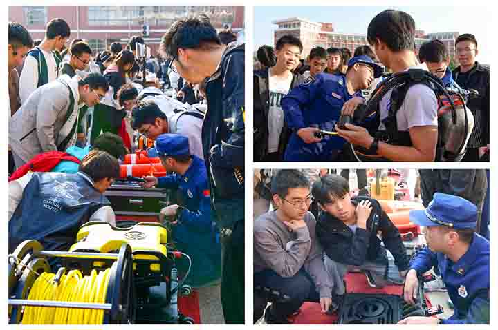 同学们在工作人员指导下,开展了疏散逃生、高空救援、高空射水灭火等演练活动,观摩了消防装备、特勤器材,参与了“预防为主,生命至上”万人签名活动。