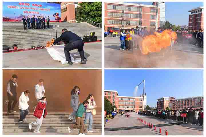 11月7日下午,我校119消防宣传月消防演练活动分别在南校区世纪广场和北校区第二教学楼前举行。校长杨小林、副校长翟耀南出席活动,焦作市消防救援支队指战员、相关职能部门和学院负责人、2023级辅导员和全体学生参加活动。开幕式由保卫部(处)部(处)长李壮文主持。