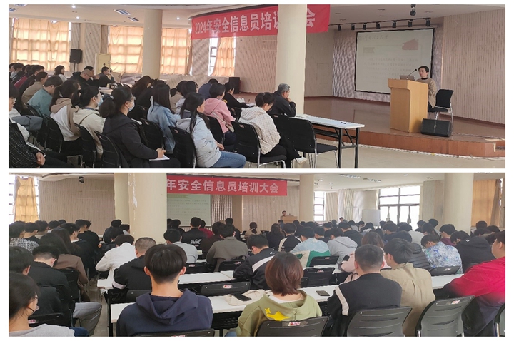 为增强全校师生的安全意识,进一步强化我校安全信息员队伍建设,构建平安校园,4月2日,保卫部(处)在大学生活动中心二楼会议室召开2024年安全信息员培训大会,保卫部(处)相关人员、学校24个学院25名安全信息员老师,以及23级108名学生安全信息员参加。