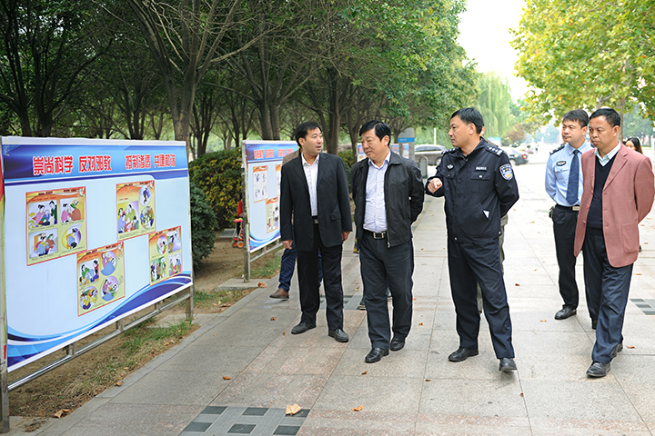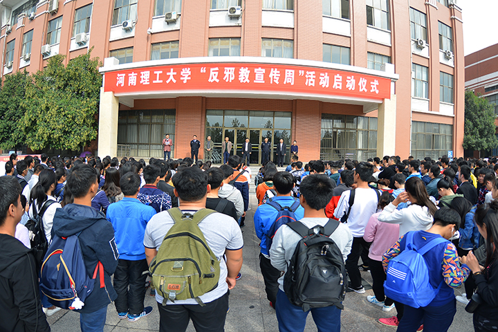 10月13日,“反邪教宣传周”活动启动仪式在我校明德楼前举行。副校长翟传森、焦作市城乡一体化示范区公安分局副局长孙海军,学校宣传部、学生处、团委、统战部和保卫处等部门负责人以及23个学院的工作人员、学生代表参加了仪式。仪式由保卫处副处长马志洋主持。