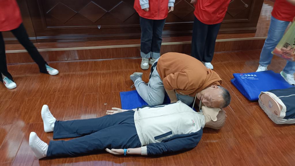 本次活动由医学院老师王蕾主讲,分为理论讲解和实践操作两部分。首先采用PPT的形式,形象生动地介绍了心脏骤停的原因及判断方法,实施徒手心肺复苏的流程、方法、注意事项及停止操作的条件。接着,由医学院学生利用模型对徒手心肺复苏术操作流程和技术要领进行了逐一讲解和同步演示。参加活动的职工对照所发放的心肺复苏急救知识宣传手册进行学习和练习,王蕾老师对每个步骤都耐心指导,发现错误动作及时纠正,细心讲解。参与人员得到了很好的学习和实践,表示如果真的遇到了突发情况,肯定不会束手无策。